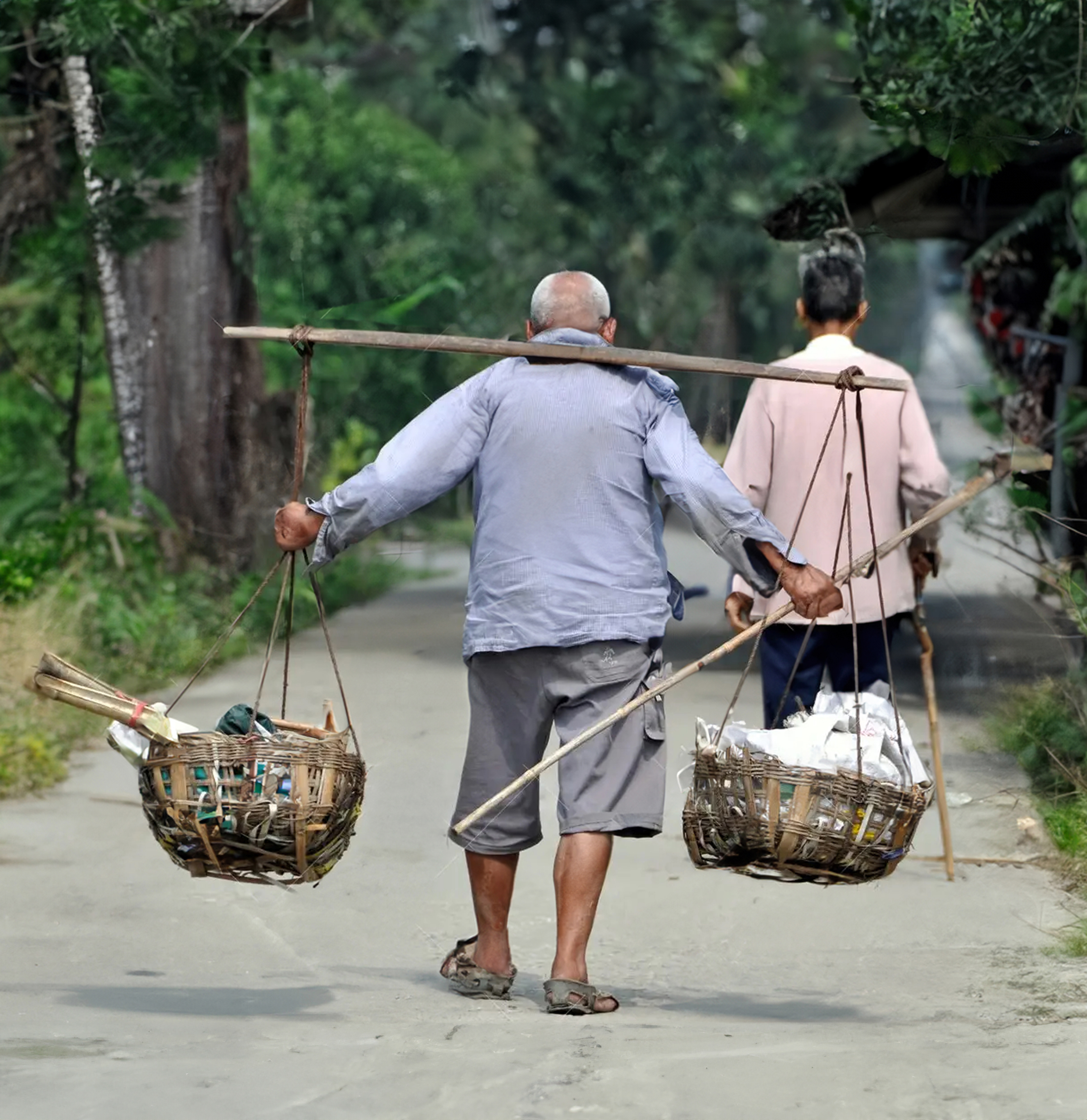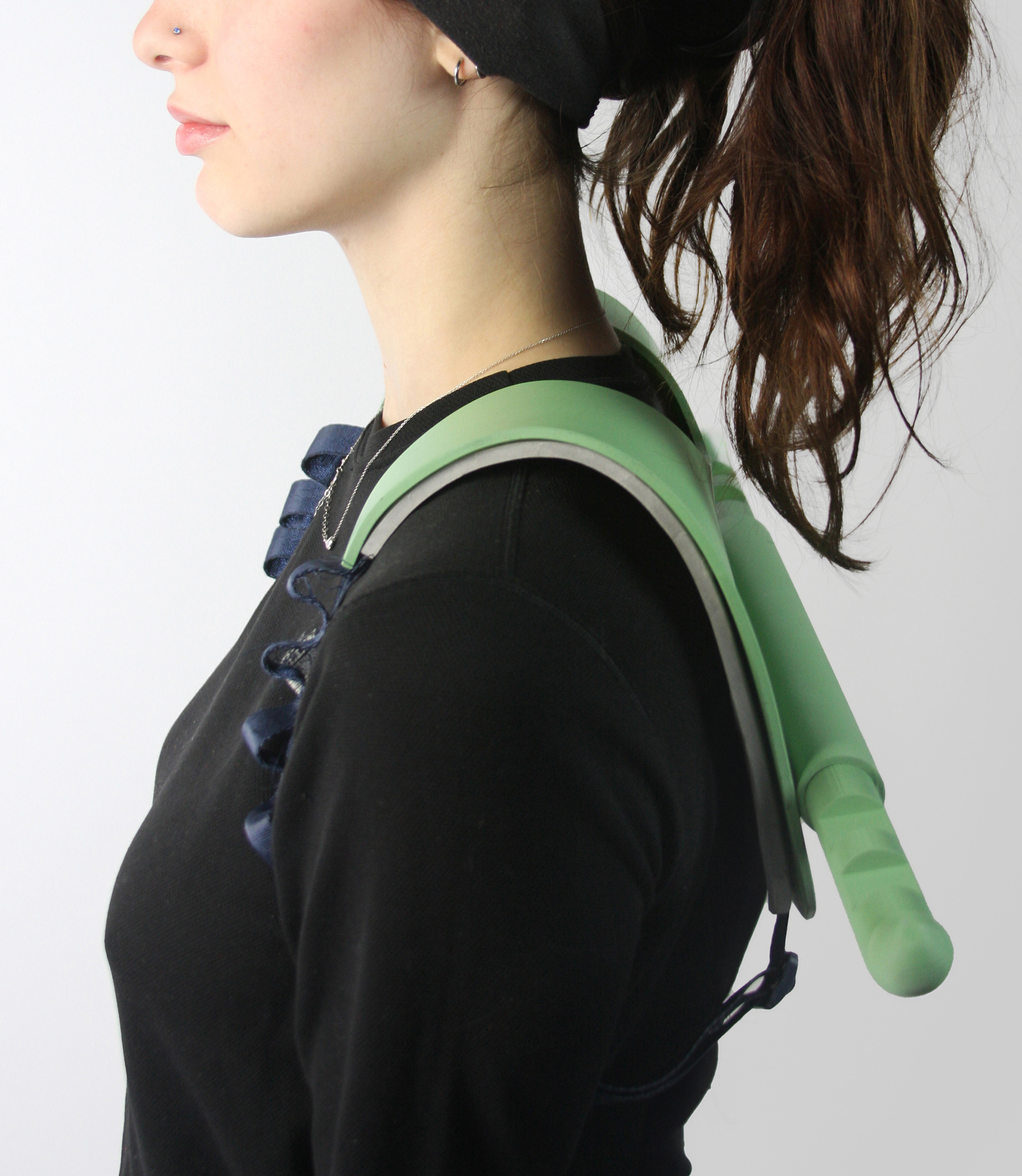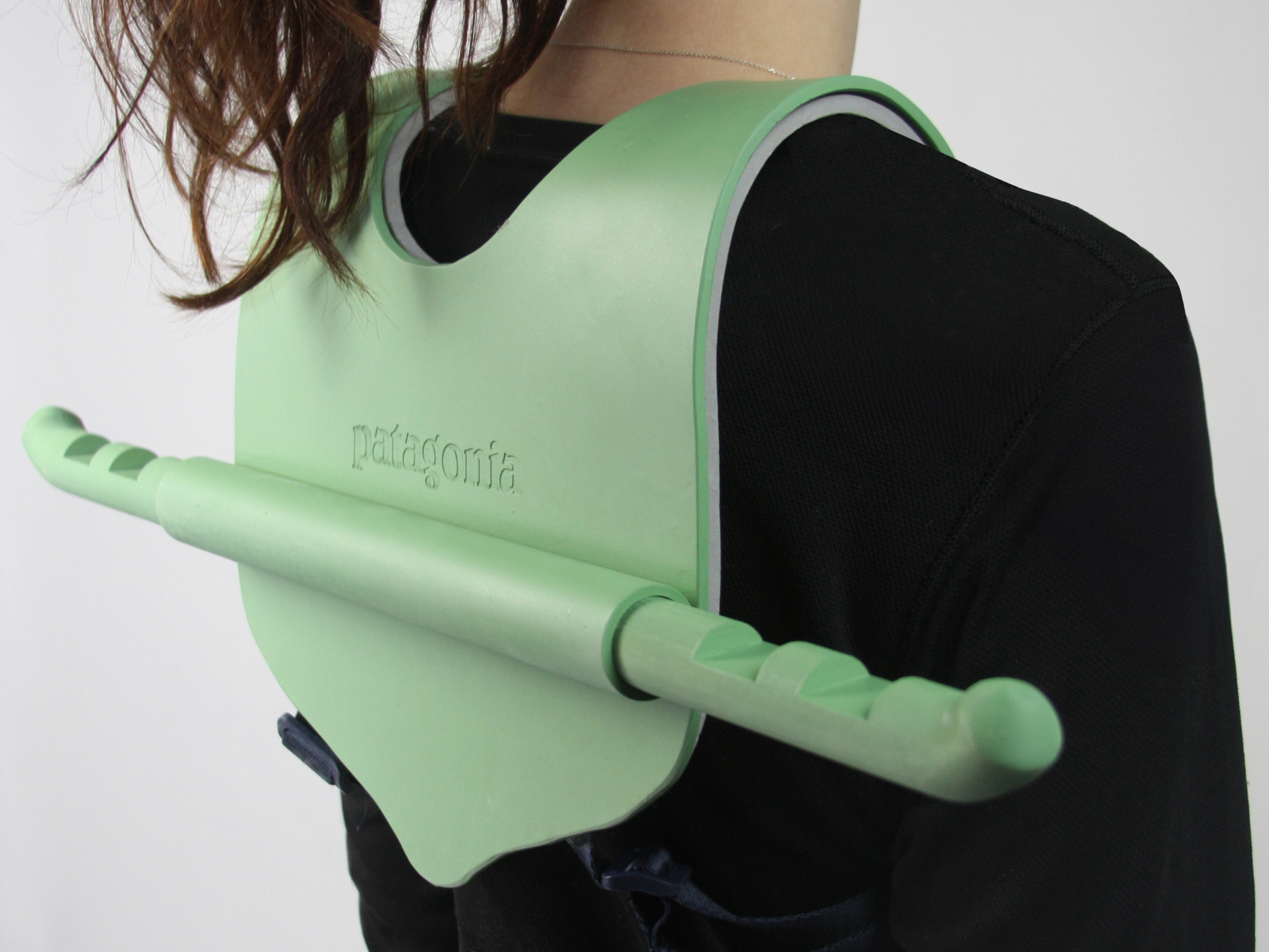A modernized carrying pole made for heavy loads evenly distributes weight for practical comfort. The Shoulder Yoke is designed with the intention of carrying groceries hands-free in bustling New York City subways, but can also be used for many other purposes. Removable arms and adjustable straps provide flexible use for a variety of situations and body types.