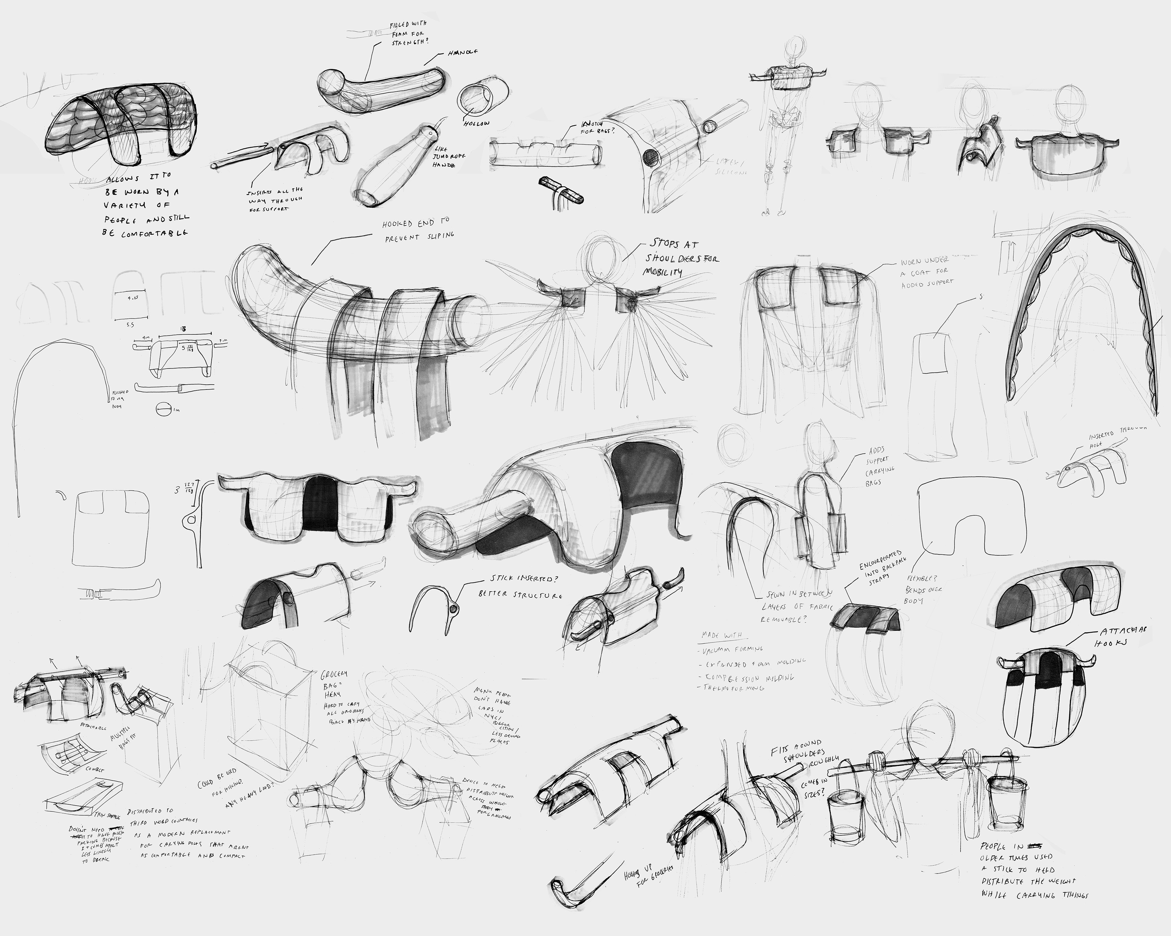 The design was refined through multiple full-scale prototypes to test weight distribution, balance, and long-term comfort. Each iteration informed adjustments to proportions, joint strength, and strap placement, ensuring stability and ergonomic performance under real-world loads.